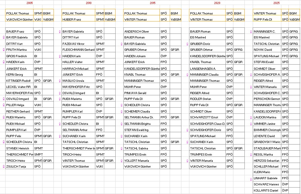 | KPÖ | 46 | 13 | -- | 28 | 11 | -- | 23 | 7 | -- |